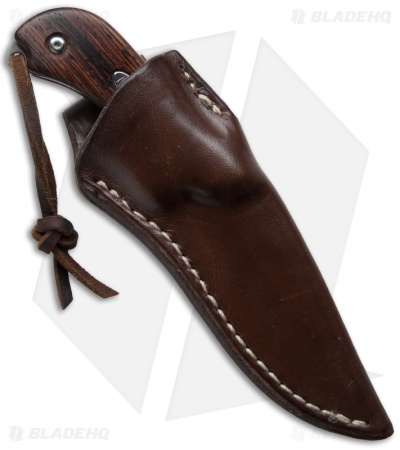 Millit Knives have brought the Pony fixed blade back to production in fine form. This knife has a stonewashed CPM-154 steel blade and oversized cocobolo scales for excellent stability and grip in hand. The Hawk Pony fixed blade includes a custom hand formed leather sheath by Zack Davis Leather.