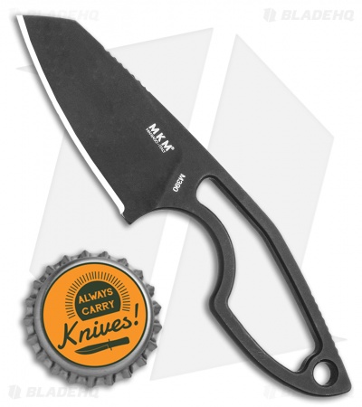 This MKM Mikro 2 fixed blade model is an exclusive to Blade HQ, originating from Jesper Voxnaes design, and is rocking a black, sheepsfoot style, Bohler M390 blade and a skeletonized, stainless steel handle. This compact blade comes with a leather sheath and neck band to be used as a neck knife.