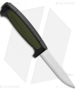 The Basic 511 fixed blade benefits from a new, larger impact resistant plastic handle with an improved finger guard for more safe use. This Morakniv Basic model uses high quality carbon steel, hardened in a time-honored and proven method in Mora. Item includes a molded polymer sheath.