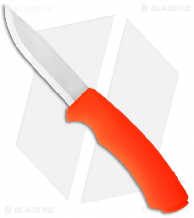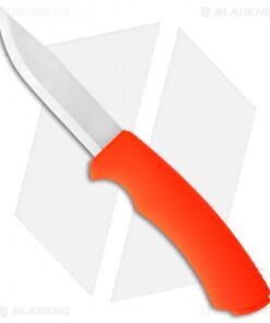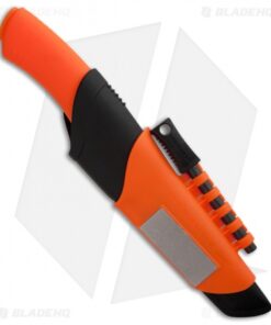 The Morakniv Bushcraft Survival knife is a competent and fully capable knife for the ultimate adventurer. It has a 3.2 mm thick Sandvik stainless steel blade with a back-cut spine, which makes it great for use with the integrated ignition fire steel. The handle has a orange friction grip for comfortable performance in wet and cold conditions. The sheath holds the fire steel and has an integrated diamond stone for field sharpening. Includes two belt clips for maximum comfort and flexibility. Please note: the protective coating on the spark the steel needs to be scraped away before you can light.