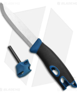 The Morakniv Companion Spark fixed blade knife is a powerful tool for bushcrafters, hunters, and outdoorsmen. It features a fire starter rod inside the handle, a clip point blade with a 27 degree scandi grind, and a right-angle spine for striking the fire starter. Its handle has a soft rubberized grip for a comfortable, high-friction grip, and a hard polymer sheath for belt carry. Upgrade your outdoor cutlery kit with this endlessly useful fixed blade.