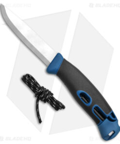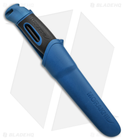 - Tough polymer handle in blue with a fire starter.