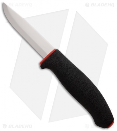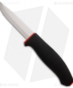 This Morakniv Allround 711 fixed blade knife has been developed for and in collaboration with demanding professionals within the construction and industrial sectors. This Morakniv fixed blade features a textured high-friction grip and ergonomically designed handle with red accent that facilitates work and prevents work-related and repetitive strain injuries. This knife has substantial finger protection. Includes black plastic sheath.