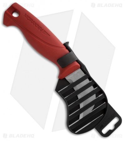 The Morakniv Craftsmen 175P has a red molded polymer handle and carbon steel blade that are designed to give the user maximum pulling force. The blade measures 63mm. Includes protective storage sheath.
