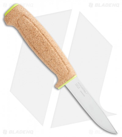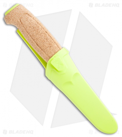 The Morakniv Floating Knife features a cork handle with bright green accents. This makes the knife easy to find, and ensures that it won’t sink if dropped in water. The blade is made from stainless steel and features the Scandi grind Morakniv is famous for. Comes with a green sheath with a belt clip.