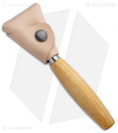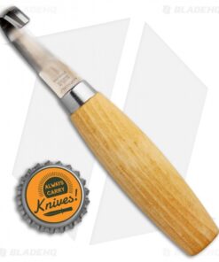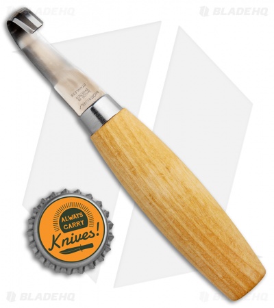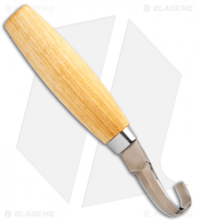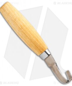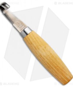 The Morakniv 162 Wood Carving knife features a carbon steel double-edge hook designed specifically for spoon carving. The hook has a 15 mm internal radius. The handle is oiled birchwood. This model includes a leather blade cover for secure storage and carry.
