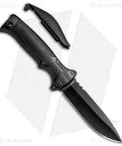 The M&P Gripswap fixed blade offers a heavy duty design with a swapable handle grip for versatile use. This model has a black finished drop point blade and a durable black handle.
