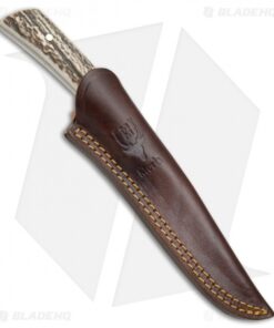 The Muela Rebeco fixed blade features a durable full-tang stainless steel blade. It sports a classic handle design with fine stag scales and a brass guard. The Rebeco is comfortable in hand and well balanced for precise control. Includes a brown leather belt sheath.