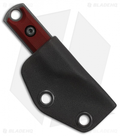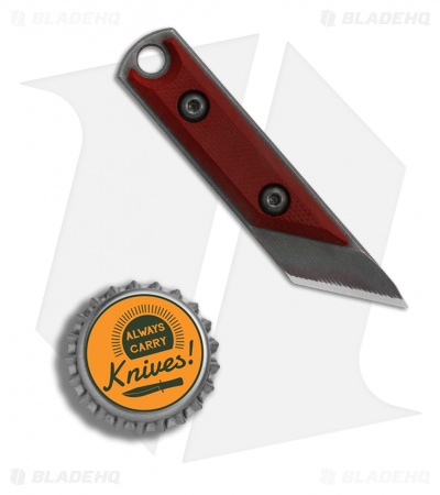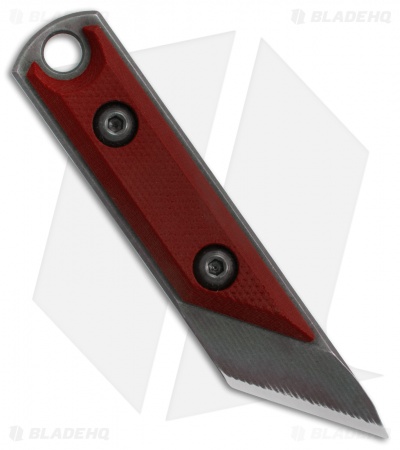 This Micro Kiridashi model sports an O1 steel blade in a distressed finish and a red G-10 handle.