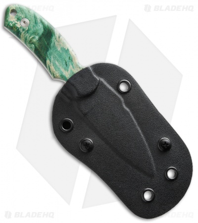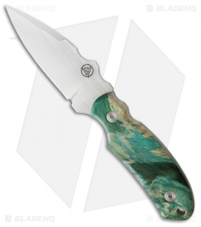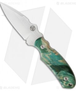 This Arch Ally is from Jeff Hall’s custom shop! It features a polished green dyed box elder wood handle. The blade is premium S30V steel with a satin finish. The Arch Ally is sized and setup for both neck and belt carry. Includes a Kydex sheath with belt attachment system and black ball chain.