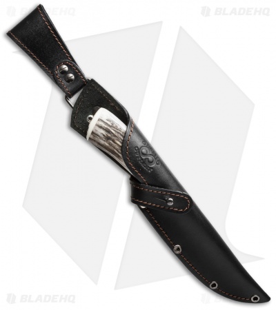 This premium fixed blade from Olamic Cutlery is a stellar piece that features a multi-bar nickel carbon mosaic Damascus (N.C.M.D.) steel blade! It has a stag handle with G-10 and Micarta inserts as well as an NCMD guard. This Birch Series Elite fixed blade comes with a leather sheath.