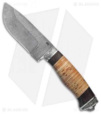 Olamic Cutlery Birch Skinner Fixed Blade Knife (4.375″ Damascus) 1655