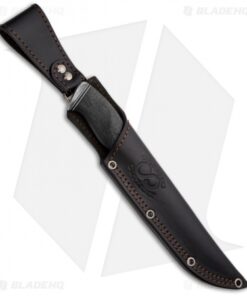 This Suna knife from Olamic Cutlery is an exceptional handmade fixed blade. The Damascus blade is made using high carbon vanadium steel with 300-350 layers in a mosaic pattern. The tang is stamped 0577 on the back side, which is the unique knife number. The handle is a single piece of carbon fiber that has been contoured and features a roped ridge pattern. The pommel cap is Damascus and the handle is fitted with G10 and aluminum spacers. The Suna fixed blade comes with a premium leather sheath with belt loop.