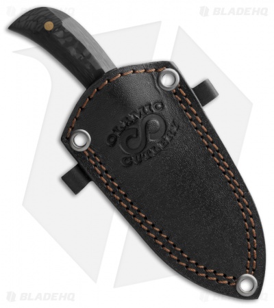 This Persian-style neck knife has a beautiful HCVD Damascus steel blade and carbon fiber paneled scales. The Persian fixed blade comes with a premium leather sheath.