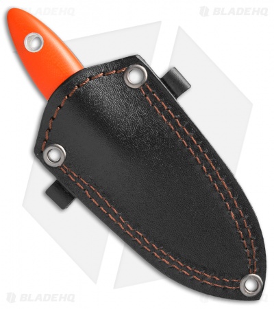 This Persian-style neck knife has a beautiful HCVD Damascus steel blade and orange G-10 scales. The Persian fixed blade comes with a premium leather sheath.