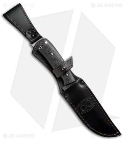 This Persian XL fixed blade knife from Olamic Cutlery features a large, full-tang high carbon Vanadium Damascus blade. Its handle is fitted with comfortable carbon fiber scales. Includes a premium leather sheath.