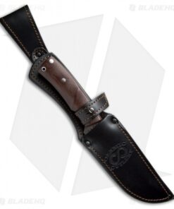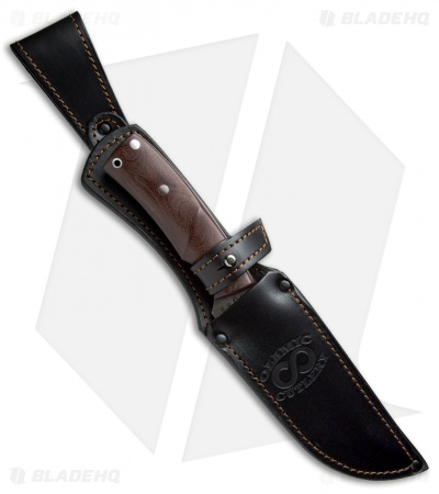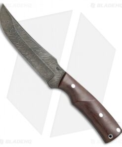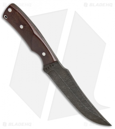 This Persian XL fixed blade knife from Olamic Cutlery features a large, full-tang high carbon Vanadium Damascus blade. Its handle is fitted with comfortable maroon linen Micarta scales. Includes a premium leather sheath.