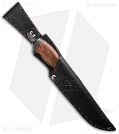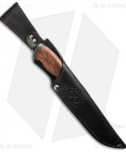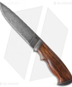 The Suna knife is an exceptional handmade fixed blade. The drop point style blade is high carbon vanadium Damascus steel. Arizona desert ironwood handle with Damascus bolsters. The Suna fixed blade comes with a premium brown leather sheath with belt loop.