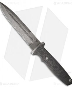 This piece features a high carbon vanadium Damascus steel spear point blade and bolster. The handle is carbon fiber with rounded edges and lightly textured faces. The Terzuola fixed blade comes with a premium leather sheath.