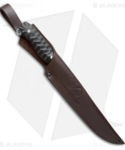 The Voynik knife is an impressive handcrafted fixed blade. This model has a relatively thin textured carbon fiber handle that provide excellent grip. The blade is is HCVD Damascus steel with an unsharpened swedge. The Voynik fixed blade comes with a premium leather sheath.