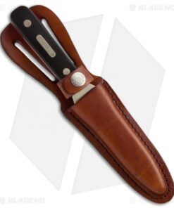 This Old Timer Boot Knife is a great tool to take along on hunting trips or wear as an everyday carry. It features a stainless steel satin finish single edge dagger blade. The full tang blade is clad with textured polymer composite scales and polished brass nickel bolsters. The Boot Knife comes with a leather sheath.