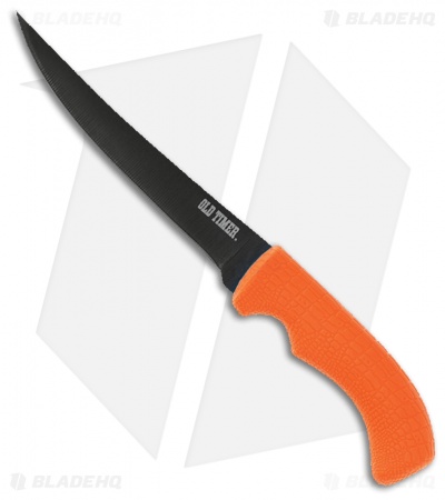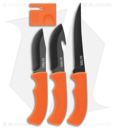 Old Timer 3-Piece Fixed Blade & Sharpener Set Orange Polymer (5.5″ Black)