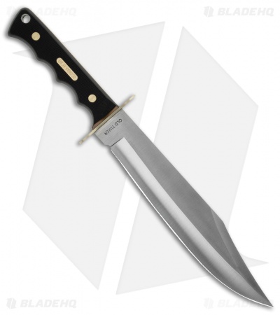 Meet the Schrade Old Timer Bowie knife. It has a whopping 10″ satin finished blade that can get any cutting job done. The handle is two-tone black and tan, built around a full tang with brass rivets and a brass cross guard. The item includes a black nylon belt sheath. This knife will make a great addition to any collection.
