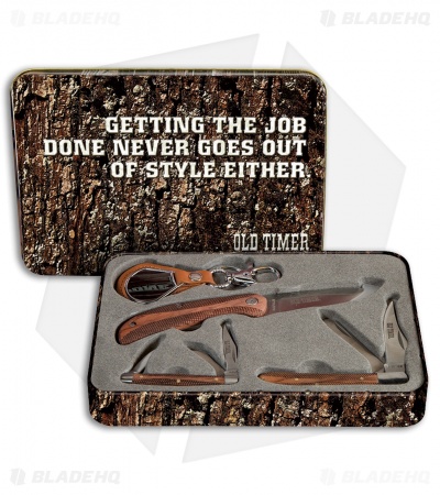 The Old Timer Limited Edition Gift Set offers a great value on 4 quality EDC items. This set includes 2 traditional pocket knives, a fixed blade, and a leather Old Timer keychain lanyard. Get yours while supplies last.