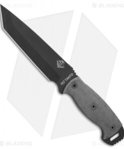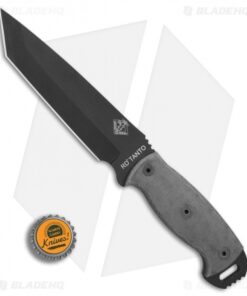 The Ontario Ranger RD Tanto fixed blade is a durable tactical knife that’s built like a tank. It has a full-tang blade made from 1/4 inch thick 5160 steel with a tactical black coating. The handle has quarter inch thick Micarta scales with an extended tang to accommodate lanyard attachment. Item includes a MOLLE compatible nylon sheath for secure belt carry.