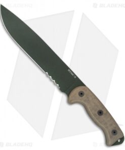 The RTAK-II has a 10-1/2 inch blade made from 5160 steel with a foliage green texture powder coat. The handle has thick natural canvas Micarta scales. Comes standard with MOLLE compatible black nylon sheath with edge protecting hard plastic insert and roomy utility pouch.