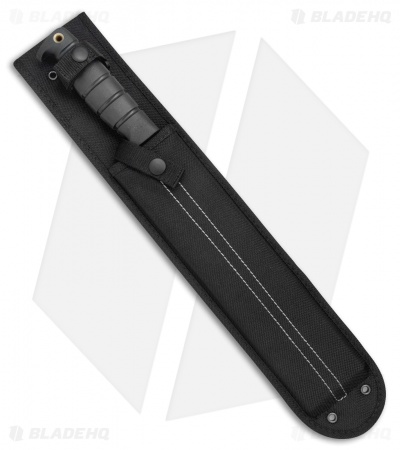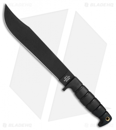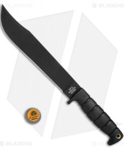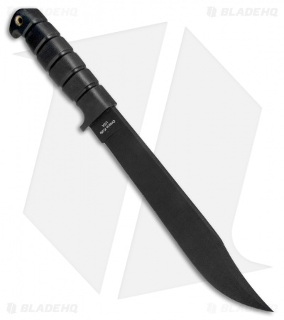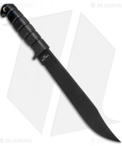 This classic style was made famous by Jim Bowie in the 1800s and has a long history as a fighting blade because of Bowie’s duel known as the Vidalia Sandbar fight in 1827. OKC’s latest version features a 10″ blade with two sharpened edges, a clip point blade, and a black, powder coat finish. The deep ridged Kraton handle, attached lanyard, and finger guard provide added security by resisting slipping. It comes with a black nylon belt sheath for convenient storage or carry.