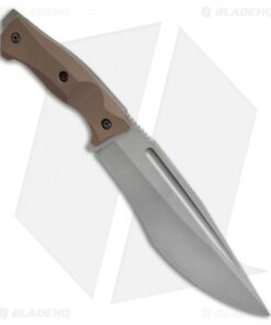 This heavy duty custom fixed blade from Peter Rassenti offers a collection worthy design with tough hard use materials. The CTS-XHP blade comes in a durable bead blast stonewash finish with a recurve belly and a clip point profile. Contoured coyote brown G-10 handle scales accent the quarter inch thick full tang. A pry bar pommel finishes off the rugged design. Item comes equipped with a kydex Tek-Lok sheath.