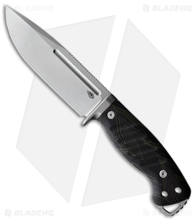 The Warthog from PMP Knives is a robust, balanced fixed blade built with hard use in mind. In hand, it is wieldy and ergonomic, with tons of jimping on the spine for that added measure of control, plus the steel guard keeps your hands doubly safe. The grooved handle is tough and easy to hold onto, and the full tang with extended lanyard space all promises a tough-as-nails knife that will be your trusty companion whether you’re in the wilderness or taking on household chores. This knife includes a well-made kydex sheath.