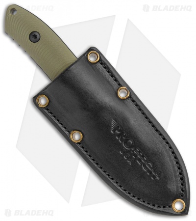 Pro-Tech George SBR Fixed Blade Knife Green G-10 (2.9″ Black) Leather Sheath