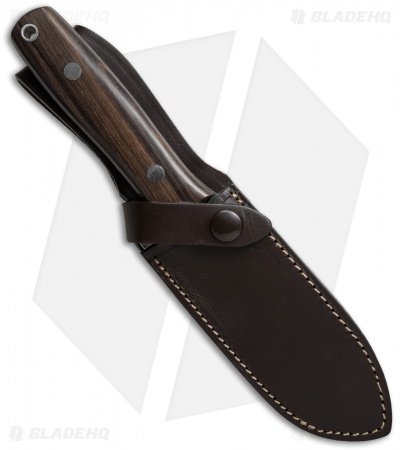 The El Nu Hunting knife by Puma knives features beautiful handmade quality and a classic fixed blade design. It comes equipped with a full tang, drop point blade made from 440C stainless steel in a satin finish. Ebony wood handle scales and a nickel silver guard add an impressive look to the knife. It includes a custom brown leather sheath with a lanyard cord and buckle snap. The El Nu Hunting knife will make the perfect addition to your fixed blade collection.