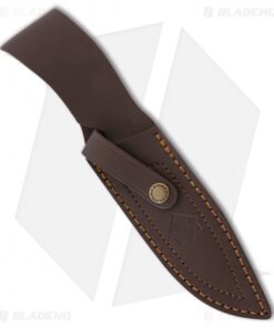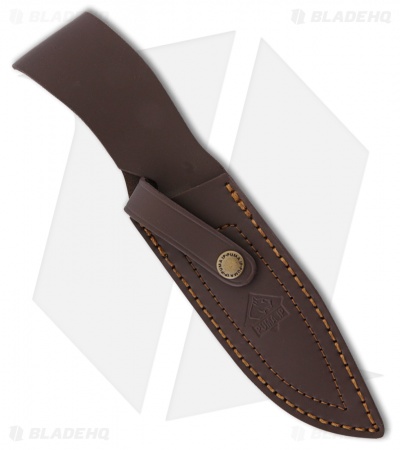 The Puma Mountain Hunter fixed blade knife can make quick work of even the largest animals. The 440C stainless steel blade features a strong point, generous belly and long flat edge for slicing. Naturally dropped stag handle scales provide a comfortable grip and include an inlayed Puma medallion. A polished brass bolster adds an aesthetic touch while doubling as a functional hand guard. Includes a brown leather belt sheath for easy carry.
