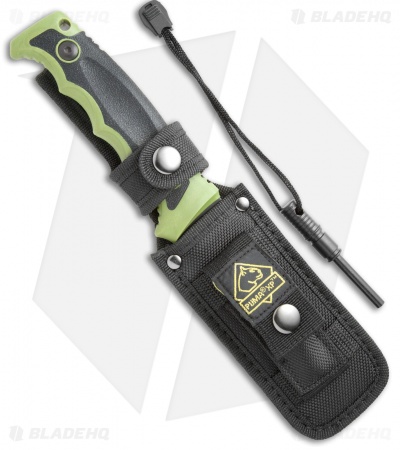 Puma’s SGB Forever Knife XP is an excellent all purpose camping knife with a comfortable green over-molded polymer grip and a black coated 440 stainless steel blade. The textured finger grooves provide a solid non-slip surface for hours of use. The black nylon belt sheath comes with a convenient pocket for the included firestriker.