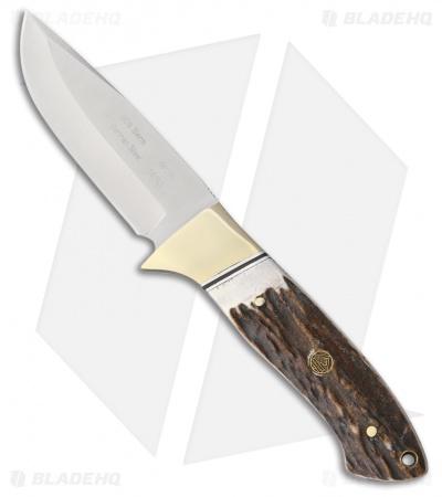 A stout do-all knife, the Puma Sierra fixed blade knife has a strong prominent point with an aggressive swedge. Comfortable processing game or general camp chores, the 4″ blade has a lot of utility. Naturally dropped stag handle scales with a generous pommel swell is comfortable in hand and provides excellent grip. A brown leather belt sheath snugly carries the Sierra comfortably on your hip while out in the field.