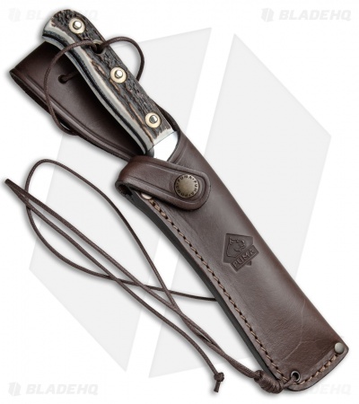 The Puma White Hunter fixed blade was designed in collaboration with the East African Pro Hunter’s Association to be the leading knife in big game hunting. Handmade in Solingen Germany, the White Hunter offers a top quality build and a proven design that are critical when operating in the field. Not all stag handles are created equal, and Puma’s meticulous manufacturing process all but guarantees a perfect fit and finish that will stand the test of time. The unique blade is made from German grade 1.4116 stainless steel that has been tempered, drop forged, and hand finished to ensure maximized strength, edge retention, and corrosion resistance. The White Hunter includes a leather belt sheath with a button snap closure.