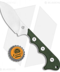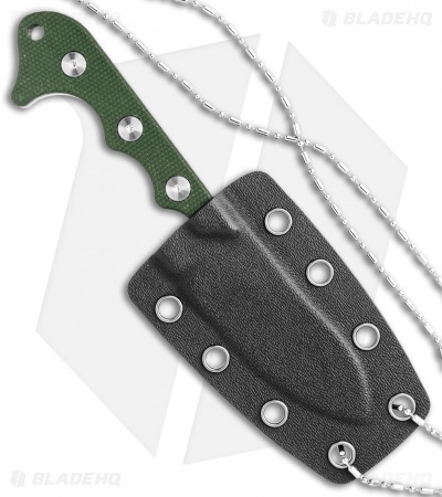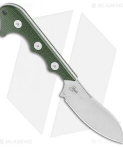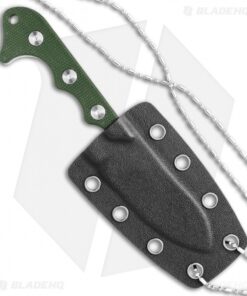 - Green micarta handle scales over a full tang.