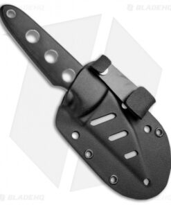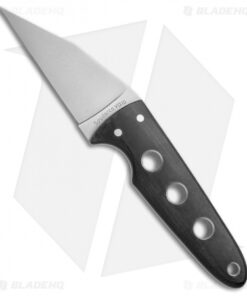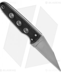 By virtue of its short blade length it is lawfully acceptable for carry most anywhere. The blade has a modified Wharncliffe-shape and is crafted of VG-10 stainless steel. Available with a plain edge, the cutting surface is flat-ground, honed thin and fiercely sharp. Made from an imposing 3mm thick slab of steel, the blade comes pressed between two pieces of slate-colored linen Micarta. Texturing along the spine provides a location to place the thumb and offers extra gripping ability when choking up on the blade. On the bottom side of the handle a yawning index finger choil situates the hand for quick retrieval and responsive control while cutting. Three dime-sized holes drilled out of the handle knock out a few grams of weight and provide indexing. Gripped in the hand, the stout little blade and curved handle feel rock solid, goading you to put it to hard-use. The Ronin is now accompanied by a Boltaron belt sheath.
