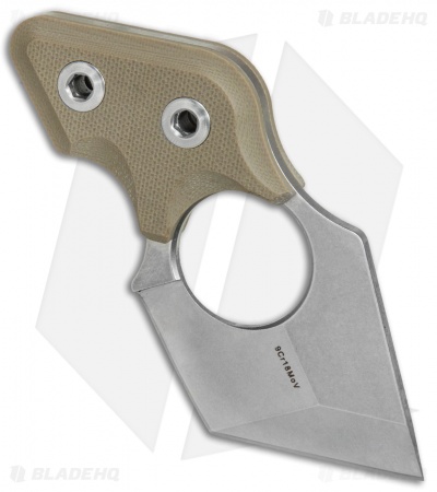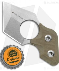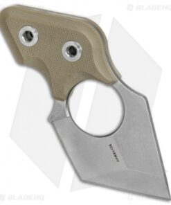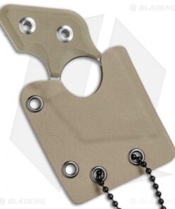 This Black Cat neck knife has a stonewashed blade with a plain edge. It comes outfitted with tan G-10 scales.