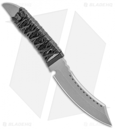 This Mini Hell Razor Fixed Blade has a black, Japanese style wrapped handle and stonewashed blade.