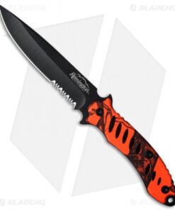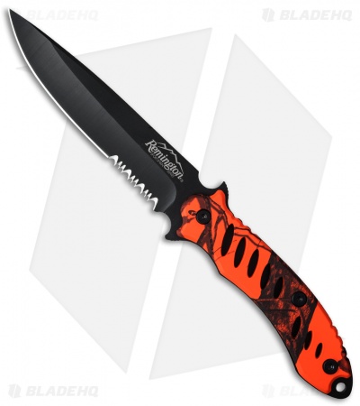 Remington FAST Fixed Blade Knife Orange Camo (5.5″ Black Serr) 19761