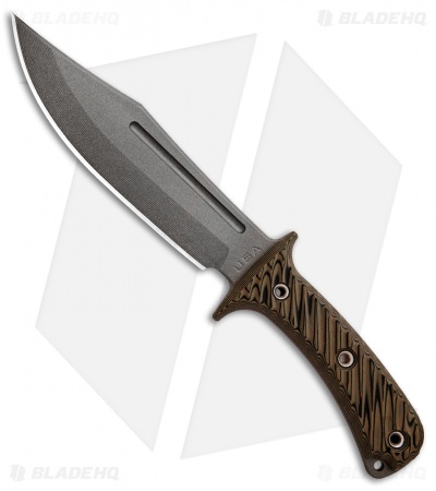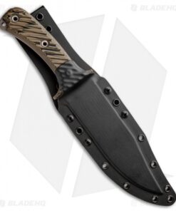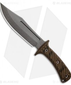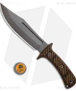 This Jungle Combat model is built with a hyena brown G-10 handle and a tungsten cerakote finished blade. The RMJ Tactical Jungle Combat is a high performance tactical fixed blade that pay’s homage to the Vietnam era bowie knives. It has an oversized 3/16″ thick Nitro-V blade that is built to withstand extreme jungle conditions. 3D textured G-10 scales provide a secure and effect grip in hand. Item includes a friction fit kydex sheath.
