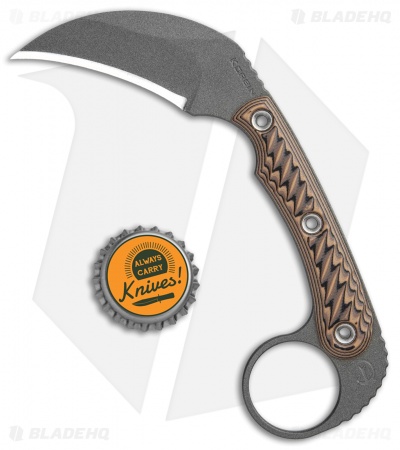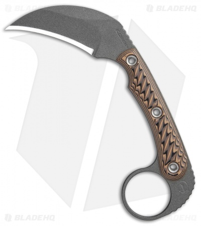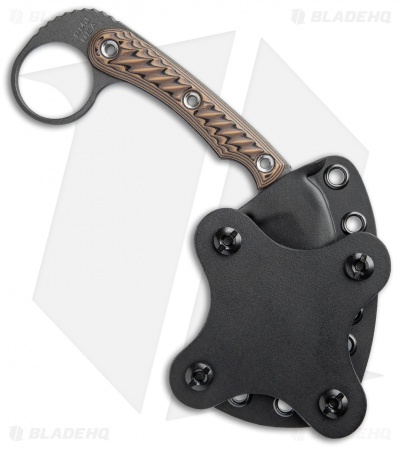 The RMJ Tactical Korbin Karambit features a Cerakoted 3″ Nitro-V blade and textured black/brown G-10 handle scales. The slender profile of the handle is excellent for light carry and ease of maneuverability. Includes kydex sheath with belt attachment.