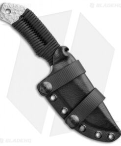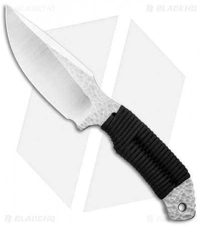 This model of the Rotten Design Drifter sports a drop point style blade with a hammered satin finish and a black paracord wrapped handle.
