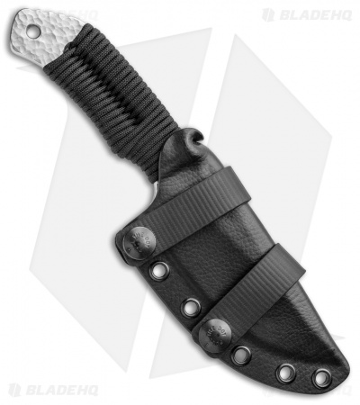The Drifter is a tactical knife through and through. From the paracord wrapped handle down to the razor sharp edge, this knife was designed with a purpose. The contoured handle is extremely comfortable in hand and lends to a natural grip for using the knife. It comes with a heavy-duty Bolatron sheath that has two belt straps attached.