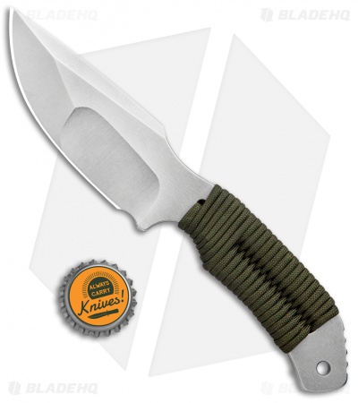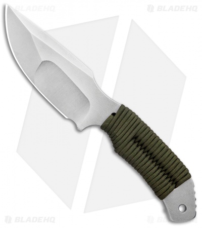 This model of the Rotten Design Drifter sports an aggressive drop point style blade with a stonewash finish and an OD green paracord wrapped handle.