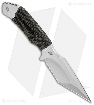 This model of the Rotten Design Drifter sports an aggressive tanto style blade with a satin finish and an OD green and black paracord wrapped handle.